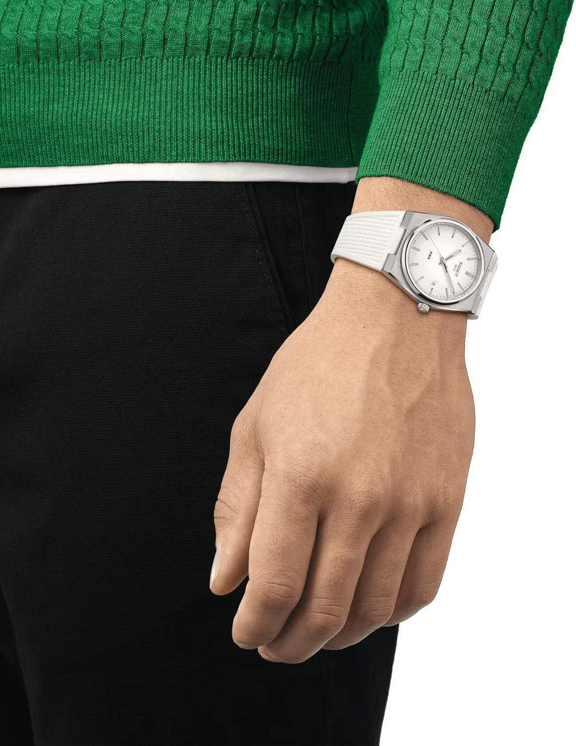 Tissot Mens PRX 316L Stainless Steel case Quartz Watches, White, Rubber, 12 (T1374101701100)