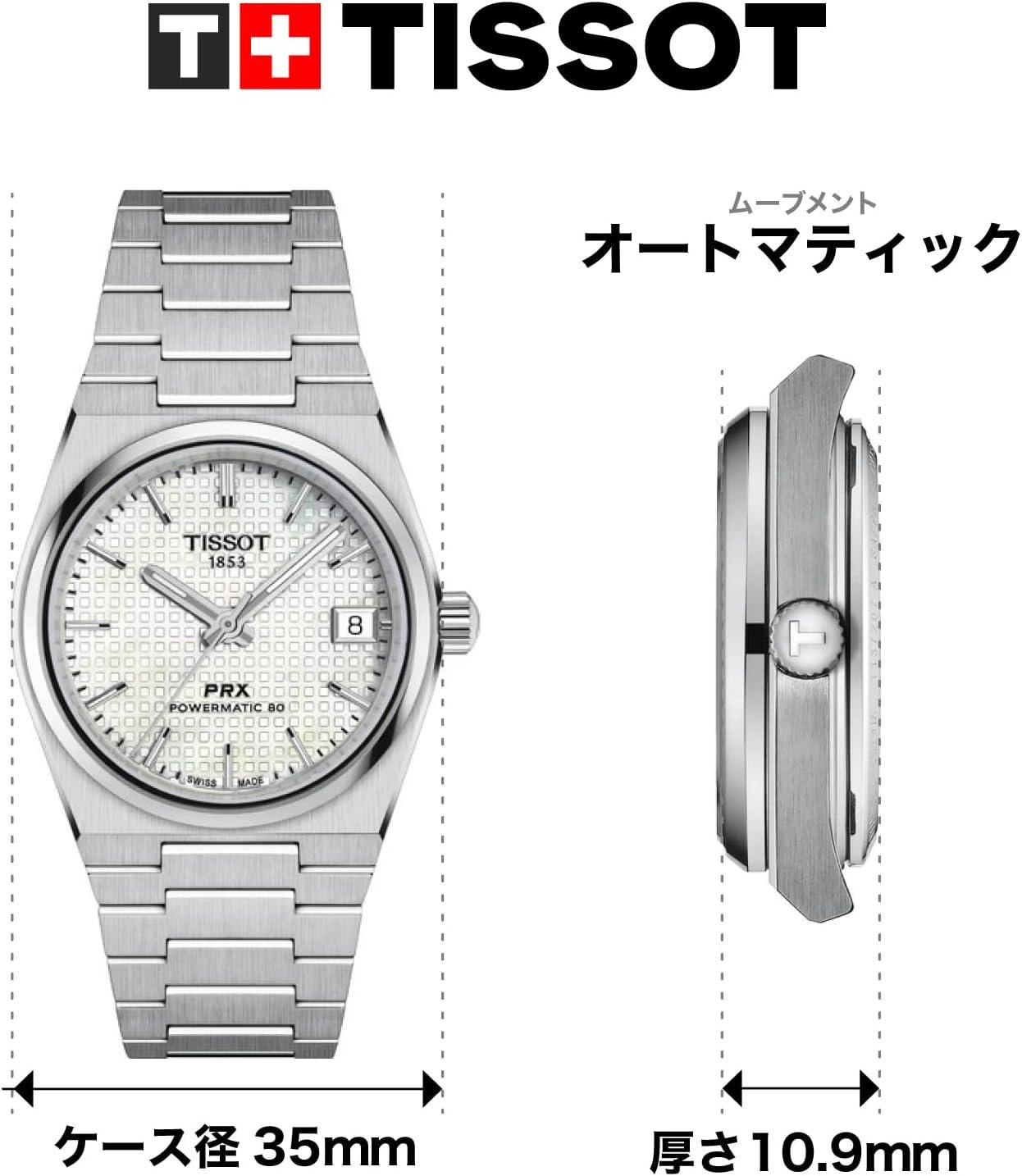 Tissot PRX Swiss Automatic Unisex Watch, Mother of Pearl Dial, Stainless Steel, 35 mm Case, T1372071111100