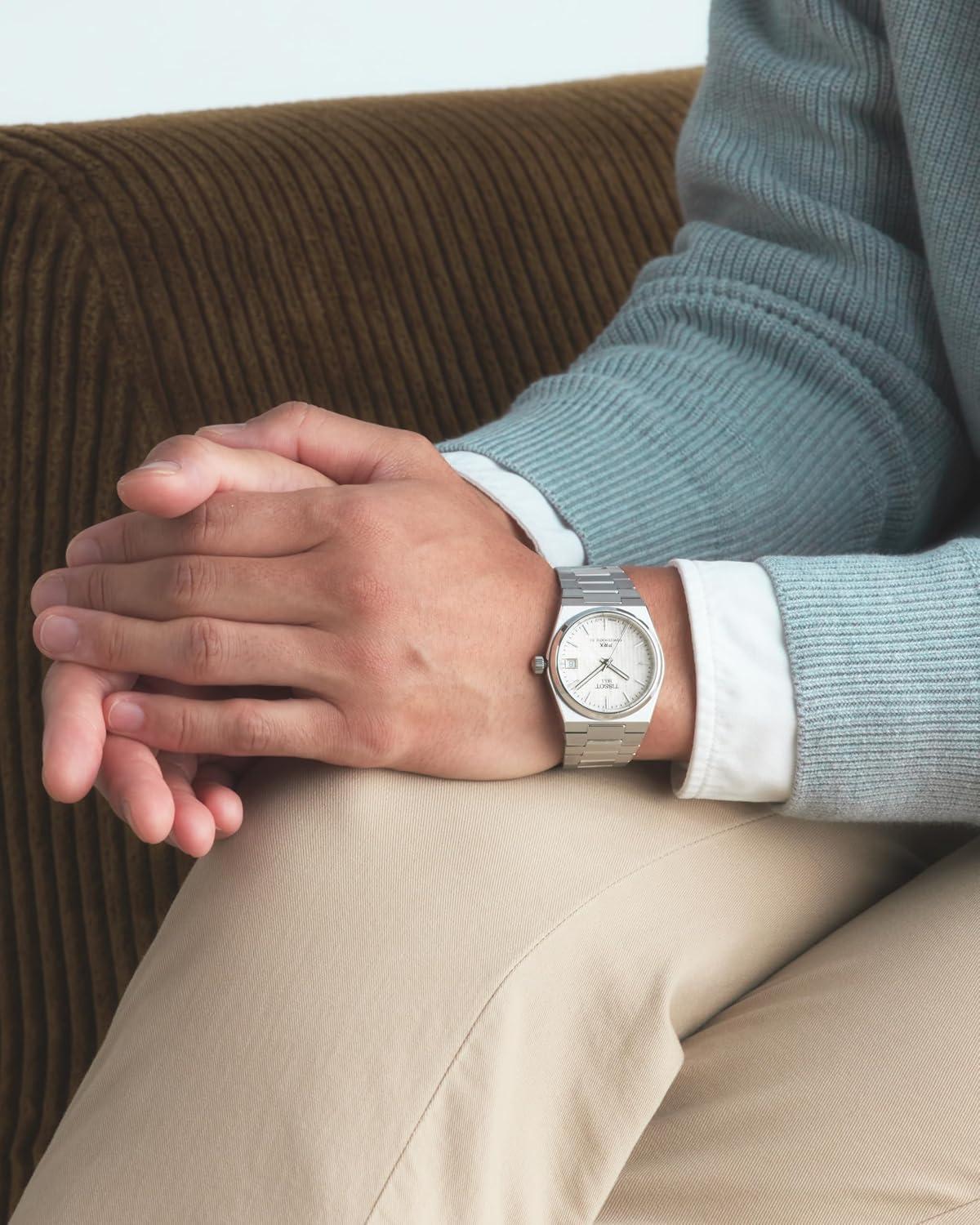 Unveiling the Tissot PRX 35mm Powermatic 80, a masterful combination of classic allure and modern refinement. This 35mm watch displays a high-quality steel case and a mesmerizing white mother-of-pearl dial, paying homage to its 1978 origins. The subtle waffle dial pattern brings a more versatile and unisex appeal than typically associated with mother-of-pearl designs. With water resistance up to 100 meters and a Nivachron™ balance hairspring, the PRX is an exquisite piece for those who appreciate the art of watchmaking. The satin-finish steel bracelet with a triple-blade folding steel clasp ensures ultimate comfort. Elevate your style with the Tissot PRX 35mm Powermatic 80 in white mother-of-pearl.