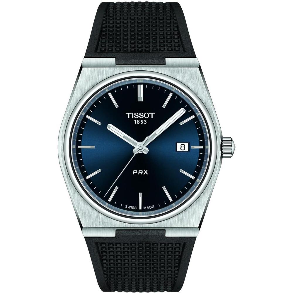 Tissot PRX, Swiss Quartz Watch for Men, 40mm Stainless Steel Case, Blue Dial, Synthetic Strap, T1374101704100